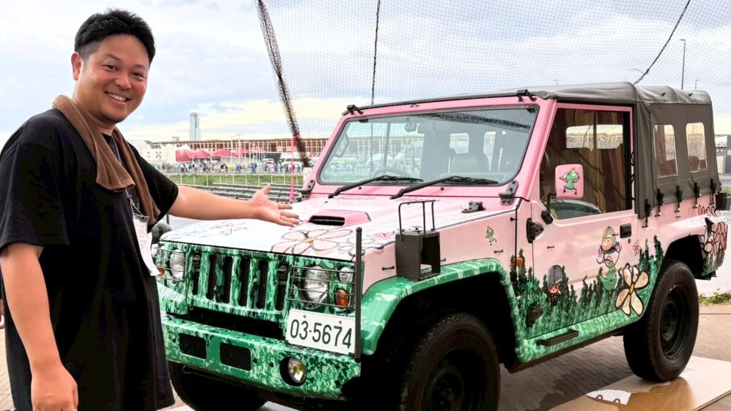Out front? A decked-out supercar and a military vehicle completely wrapped in MUSASHI art—how cool is that?!