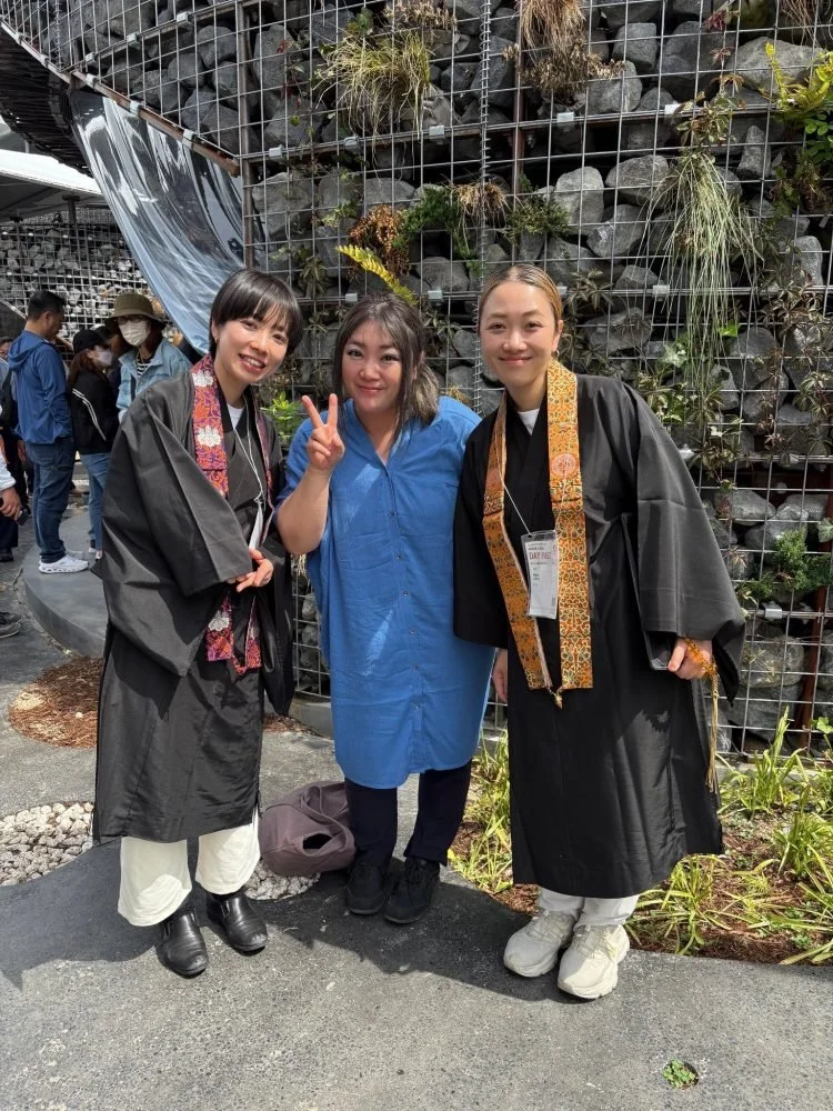 In the picture above, Nacchan is on the left, Fumi is in the center (the current community coordinator), and Nacchan’s younger sister is on the right. The traditional kesa robes look elegant, don’t they?